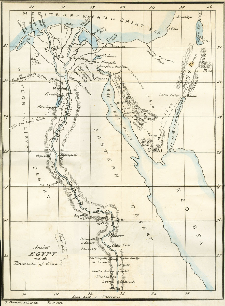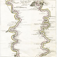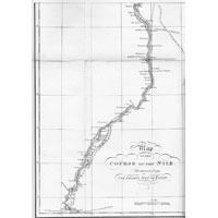 Reproduction of Leakes’ map of the Nile, Giovanni Belzoni. 1821. (The bottom half is shown in the next image.)