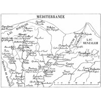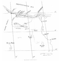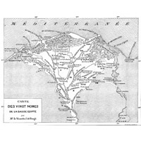Jean-Raymond Pacho (1794-1829) was a French explorer who in 1827 published his book (followed by a second atlas volume in 1829) Relation d’un Voyage dans La Marmarique, La Cyrénaïque, et les Oasis d’Audjelah et de Maradèh [Relation of a Journey through Marmarica, Cyrenaica, and the Oases of Audjelah and Maradeh], at Paris. The book was ‘published under the auspices of the Minster of the Interior’, and hence was viewed with considerable official favour. (See the pdf of the title page of the volume.) Marmarica is an ancient name for the Mediterranean coastal regions between Cyrene and Egypt. The Foundation has an original of Pacho’s map of Eastern Libya and Western Egypt, reaching as far as Alexandria and Rosetta in the Egyptian Delta, and extending as far west as the bottom of the eastern side of the Gulf of Sirte. This is now made available here as an image with magnifying software (keep clicking and it gets larger and larger), and also as a pdf download. The map includes rare maps of four Libyan oases in considerable detail. The region of the Oasis of Siwa is also shown in detail, under the name of Syouah. Interesting details emerge from this early map, such as an indication of the Mataleb Ruins east of the Oasis of Bahariyah. Locations of springs are carefully mapped along desert routes. This rare old map is extremely valuable in showing the state of things at the early date of 1826, before any modern development had taken place.