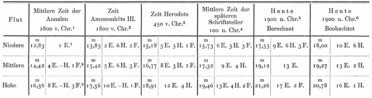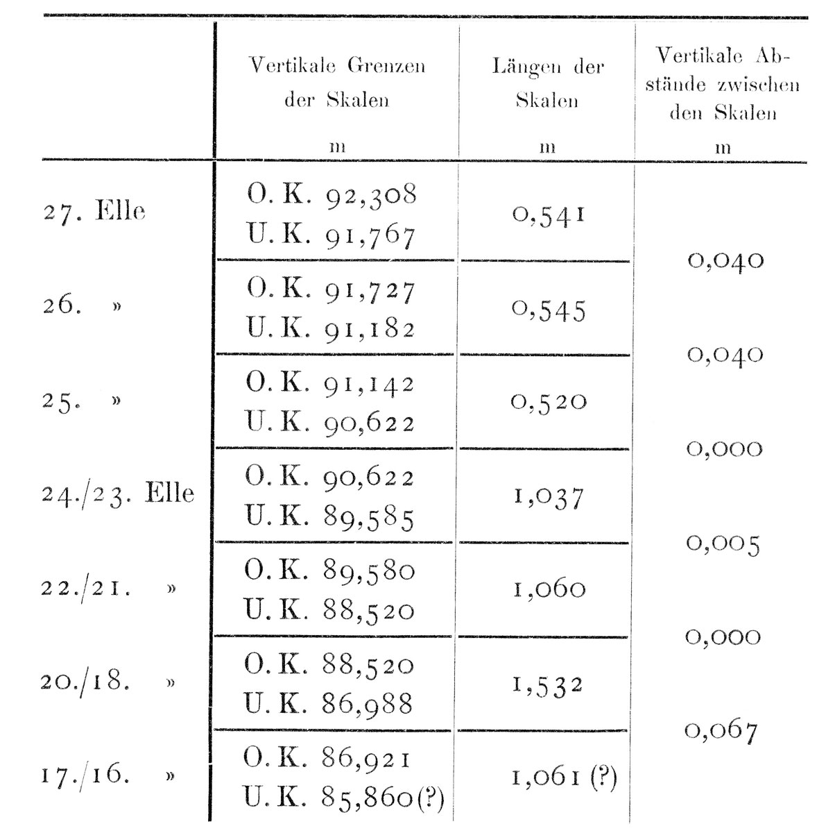 The following list gives the values in cubits (‘Ellen’ in German.)