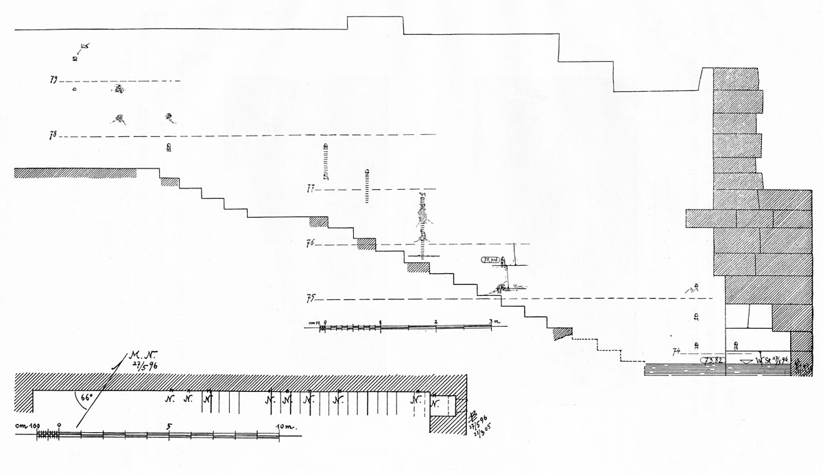The Great Nile Gauge of Philae. Above, the north wall; below, the ground plan.